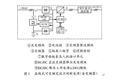 根據負載性質,這種可變頻UPS同樣可以像普通UPS一樣設計成后備式和在線式。該電源的過載能力為150%時3 s,整機效率為98%以上。
