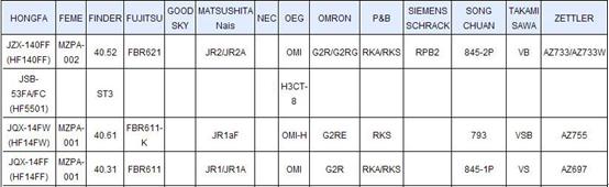 以繼電器為例,廈門宏發的繼電器產品能對富士通、歐姆龍、松下電工、松川等國際公司的產品進行替代。具體可見下圖,如廈門宏發的JZX-140FF系列產品可以替代富士通FBR621、OMRON的G2R/G2RG、P&B的RKX/RKS系列產品等。