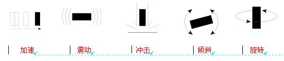 加速、震動、沖擊、傾斜和旋轉(zhuǎn)——除了旋轉(zhuǎn)外,其它四種運(yùn)動實(shí)事上都是加速度在不同時(shí)間段的表現(xiàn)。然而,我們?nèi)祟愂菬o法靠直覺來做出運(yùn)動狀態(tài)的判斷,例如震動是加速還是減速。分別地考慮每一種模式可以幫助我們想出更多可能的應(yīng)用。