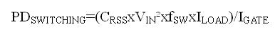 其中CRSS是MOSFET的反向傳輸電容(數據資料中的一個參數),fSW為開關頻率,IGATE是MOSFET的柵極驅動器在MOSFET處于臨界導通(VGS位于柵極充電曲線的平坦區域)時的吸收/源出電流。