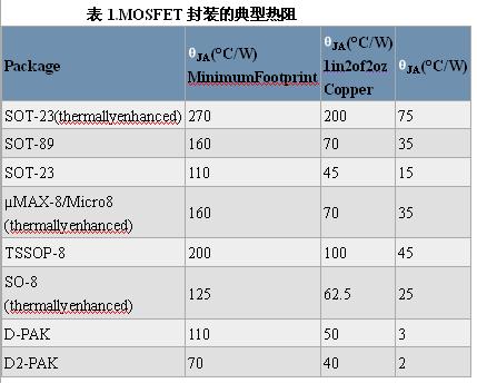 注:同樣封裝類型的不同器件,以及不同制造商出品的相似封裝的熱阻各不相同,和封裝的機械特性、管芯尺寸和安裝及綁定方法有關。需仔細考慮MOSFET數據資料中的熱信息。