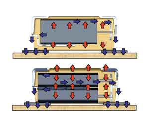 兩陽(yáng)極鏡像設(shè)計(jì)的ESR性能稍遜色于三陽(yáng)極縱向結(jié)構(gòu)的效果,但它制造起來(lái)更便宜。鏡像設(shè)計(jì)的主要好處在于,它使多陽(yáng)極電容器的高度減小,最低下降到3.1mm。