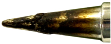如果焊咀沾滿碳化助焊劑,焊咀便不能夠溶錫把足夠的熱量傳送到焊點上,因為焊咀是必須要透過溶錫作為媒介傳送熱量的。此外,焊咀鍍鐵層會因為溶錫不足而外露氧化,再加上錫和鐵的金屬間化合物氧化,焊咀便會迅速被損耗。在高溫情況下會容易產生此現象,所以應盡量降低焊咀溫度。