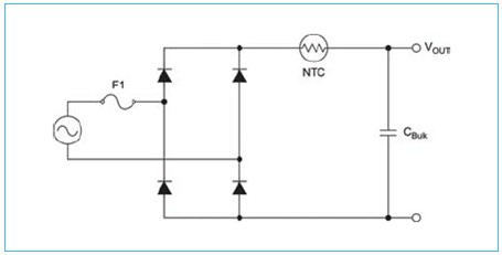 NTC 存在的另一個(gè)主要問題就是其熱堆積 (thermal mass) 或時(shí)間響應(yīng)。如果電源電壓暫時(shí)下降或電源電壓長時(shí)間嚴(yán)重欠壓,而此時(shí)大容量電容器又切斷對其的有效充電,那么將會引發(fā)問題。當(dāng)線電壓恢復(fù)正常時(shí),NTC 或許還未能獲得足夠的冷卻時(shí)間,這樣將使其處于低阻抗?fàn)顟B(tài)。在這種情況下,由于線電壓的恢復(fù)而產(chǎn)生比正常情況下更高的浪涌電流,甚至比初次啟動時(shí)產(chǎn)生的浪涌電流還要高。此時(shí),電路無任何保護(hù)措施。這種超乎尋常的大電流會損壞電路中傳動系元件,如保險(xiǎn)絲、焊點(diǎn)、線跡以及路徑中的所有元件。