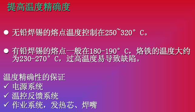 在焊接工具的改進方面,包括提高溫度精確度,提高發熱功率,工藝改進三方面內容。