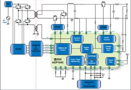 如何提高電源的效率,是目前電源設(shè)計(jì)中面臨的重要課題。數(shù)字電源技術(shù)的出現(xiàn)為提高電源的效率提供了新的方法。ADP1043是ADI公司推出的一款針對(duì)高端服務(wù)器、存儲(chǔ)器以及通信設(shè)備等電源所設(shè)計(jì)的數(shù)字電源控制器,可支持多種拓?fù)浣Y(jié)構(gòu),并利用直觀的圖形用戶界面(GUI)無(wú)需用語(yǔ)言進(jìn)行編程,便可在幾分鐘之內(nèi)配置包括頻率、時(shí)序、電壓設(shè)置與保護(hù)限制等系統(tǒng)電源參數(shù)。圖1所示為ADP1043的典型應(yīng)用電路。其所采用的數(shù)字電源技術(shù)可幫助實(shí)現(xiàn)高效率電源。
