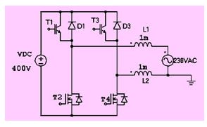 由于上橋臂的igbt工作在50hz的開關頻率下,實際上并不需要對該支路進行濾波。因此對電路拓撲進行優化,可以得到圖14所示的發射極開路型拓撲。這種拓撲的優點是只有有高頻電流經過的支路才有濾波電感,從而減小了輸出濾波電路的損耗。