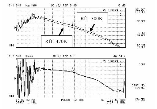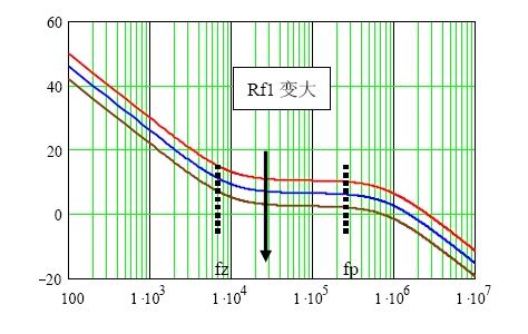 因此,當補償網絡進入系統環路之后,Rf1的作用是使環路增益的幅頻特性上下平移,同時環路增益的相頻特性保持不變。