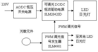 光敏元件的作用是感受周圍的日光,如果日光越強那么就輸出一個PWM信號到所有靠近日光的LED燈具(例如LED日光燈),把它們的亮度調暗。一個調光信號發生器可以調節很多LED燈具,只要這些燈具的恒流驅動源帶有PWM調光控制接口。這種調光系統本身的效率高達92%以上。而且不存在任何和墻上可控硅調光線路的兼容性問題。這種全自動的自適應節能調光是任何熒光燈、節能燈、高壓鈉燈等氣體放電管根本無法實現的,而卻是LED燈具最擅長的。