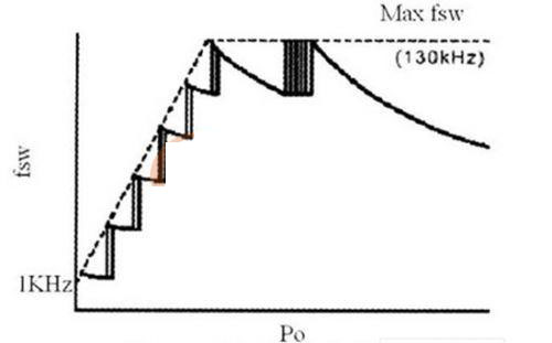 降低開關電源功耗的主要途徑是降低開關損耗和控制電路功耗。減少控制電路功耗可通過選擇功耗低、功能強、所需外部元件少的控制芯片及簡化外部控制電路來實現(xiàn)。這里主要討論降低開關損耗的措施。許多電子產(chǎn)品在使用中常處于輕載或待機狀態(tài),而開關電源*率開關管的開關頻率都很高,當開關電源工作在輕載或待機狀態(tài)下時,開關損耗成為主要損耗,相對損耗大大增加,效率降低。降低輕載損耗的有效方法是在輕載狀態(tài)下降低開關電源的開關頻率,從而使輕載效率保持與滿載時相同。圖1中,隔離變換控制電路采用準諧振電源控制器FA5531P及外圍元件構成。FA5531P的開關頻率不是由他激振蕩器決定的固定開關頻率,而是由自激振蕩決定。芯片在正常負載時保持固定頻率的準諧振開關狀態(tài),輕載時自動降低開關頻率以減少空載損耗,最低開關頻率可降至1KHz,F(xiàn)A5531P開關頻率與輸出功率關系如圖3所示。FA5531P的另一個特點是具有內(nèi)部啟動電路,從而也降低了待機功耗。FA5531P自身功耗很低,工作電流僅1.5mA,集成度高,只需極少的外部元件。