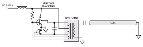 Royer架構(圖1)的最佳應用是在不需要嚴格控制燈頻和亮度的設計中。由於Royer架構是自振蕩設計,受元件參數偏差的影響,很難嚴格控制燈頻和燈電流,而這兩者都會直接影響燈的亮度。因此,Royer架構很少用於LCD電視,盡管它是本文所述四種架構中最廉價的。