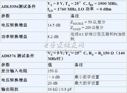 表3. ADL5356和AD8376接口和增益參數