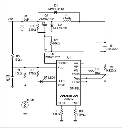 圖3. 采用DS2712充電控制器對(duì)NiMH電池充電