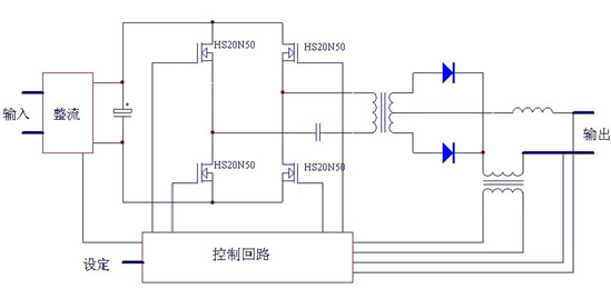 早期的逆變焊機(jī)中功率開關(guān)器件采用晶閘管,逆變頻率為2--3KHz,變壓器鐵心采用硅鋼片,本機(jī)采用成啟半導(dǎo)體(HOMSEMI)MOSFET,逆變頻率為100KHz以上,主變壓器鐵心采用微晶鐵心和鐵氧體.主變壓器介電強(qiáng)度和絕緣電阻均滿足國標(biāo)要求,有理想的短路電流控制特性.