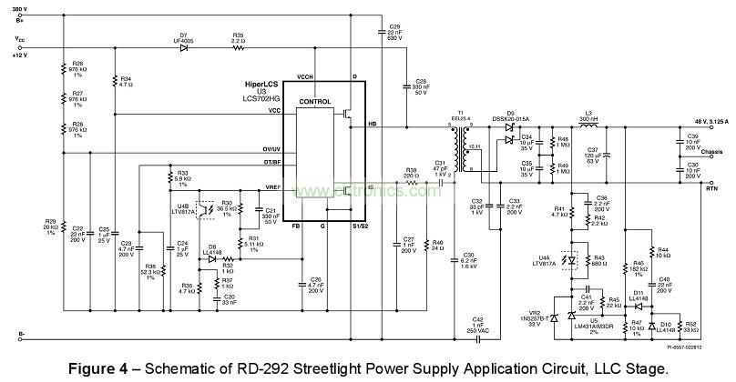 RDR-292 中所介紹的驅動器電路,在 230 VAC 和 110 VAC 輸入條件下效率分別可超越 93% 和 91% 。 此設計提供系統(tǒng)功率因子 (PF) 達 0.97 以上,THD 小于 10%,可輕松符合 EN61000-3-2 C。在相同的設計平臺下,只要簡單的從HiperPFS™( PFC)和HiperLCS™(LLC)家族成員中選擇不同的轉換器 IC以及對應的功率器件的大小,就能將設計在 75 W 到 400 W 之間進行調整。