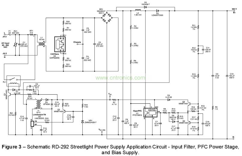 為了能夠安裝在遠程照明控制系統(tǒng)中,此設計實施了以Power Integrations 的 LinkSwitch™-TN IC 為基礎的高效率待機電源供應器功能。 新加入的 CAPZero™ X 電容放電 IC 提供進一步的節(jié)能效果,于 264 VAC 輸入時可減少無負載功耗大約 800 mW。