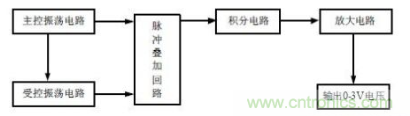 電路濕度的脈沖信號再經過后面的二極管整流、RC積分電路,得到隨溫度變化的電壓。由于信號比較微弱,再經過一個同向比例放大器把信號放大,最終把信號調理為0~3V的輸出。