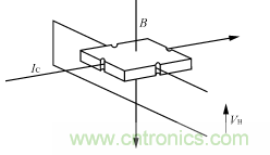 式(1)中,若保持控制電流IC不變,在一定條件下,可通過測量霍爾電壓推算出磁感應(yīng)強度的大小,由此建立了磁場與電壓信號的聯(lián)系。根據(jù)這一關(guān)系式,人們研制出了用于測量磁場的半導(dǎo)體器件,即霍爾器件。