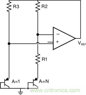 電阻器R2和R3分別可確定通過Q1和Q2 的電流值。R2和R3的變化可導致參考電壓(公式5)的正溫度系數不準確。不過,可通過對電阻器R2與R3進行良好匹配來降低該變化所引起的誤差。