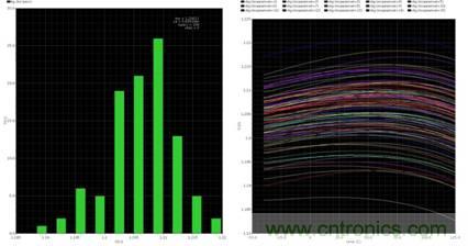 所推薦帶隙參考不僅可用于超低噪聲、高PSRR的低壓降穩壓器,而且還可采用CMOS 9T5V 技術實施。PSRR值如圖8所示,輸出電壓精度的蒙特卡洛溫度變化仿真結果如圖9所示。測量結果請參見表1。