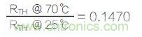 假設(shè)在25℃或室溫下,RTH為10,000Ω,那么,在70℃下,RTH為1,470Ω。