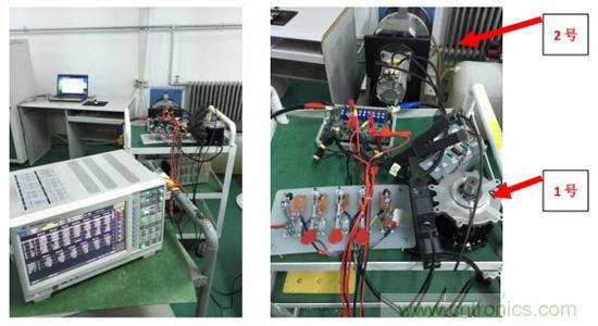 此次測試的對象為小型電機系統(tǒng),系統(tǒng)分為驅(qū)動器、電機平臺、測試,3個部分。驅(qū)動器輸出通過電纜連接到電機平臺,電機轉(zhuǎn)軸上安裝扭矩