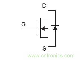 圖1所示是一個N溝道功率MOSFET的典型符號。本征體漏二極管由p-body和n-drift兩個區組成,如圖1所示,體漏二極管與MOSFET的導電溝道并聯。