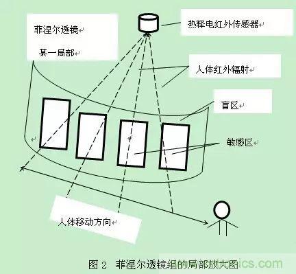 一旦入侵人進入探測區(qū)域內(nèi),人體紅外輻射通過部分鏡而聚焦,從而被熱釋電元接收,但是兩片熱釋電元接收到的熱量不同,熱釋電也不同,不能抵消,經(jīng)信號處理而報警。