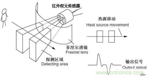 被動紅外傳感器包含兩個互相串聯(lián)或并聯(lián)的熱釋電元。而且制成的兩個電極化方向正好相反,環(huán)境背景輻射對兩個熱釋電元幾乎具有相同的作用,使其產(chǎn)生釋電效應相互抵消,于是探測器無信號輸出。