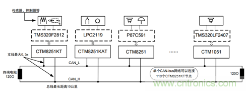 與485類似,CAN-bus也是以總線的方式進行通信的,所有的CAN節(jié)點都掛在一對差分線上。但CAN總線中的節(jié)點不存在主從的概念,當節(jié)點有數(shù)據需要上傳時可自主、即時發(fā)送,先進的仲裁機制保證數(shù)據不會沖突。