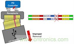 圖1:將VBUS短路到CC和SBU管腳將導致下游電路故障