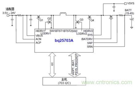 由于C型USB端口是通用的,且具有很高的功率傳輸能力,是適合此類應(yīng)用的理想選擇。為了兼容具有不同電壓和功率電平的電源,諸如無(wú)人機(jī)這樣的多元電池組系統(tǒng)很有必要使用降壓升壓充電器。在飛行間隔期間,用戶能夠快速而安全地對(duì)電池進(jìn)行充電也是至關(guān)重要的。bq25703A和bq25700A支持高達(dá)6.35A的充電電流,并具有廣泛的保護(hù)功能,包括有助于從各種適配器獲得最大功率的輸入電流優(yōu)化(ICO)。圖1提供了bq25703A應(yīng)用圖中的附加信息。