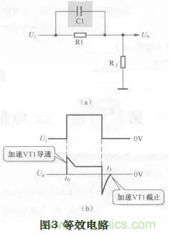 加速電容Cl與三極管VT1輸入電阻Ri構成如圖3(a)所示的等效電路。