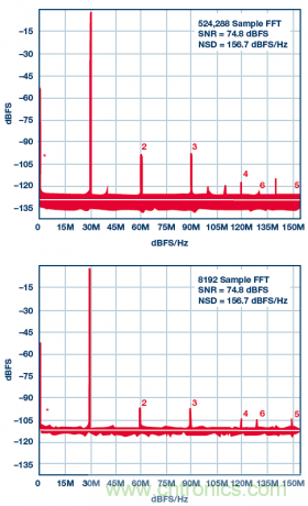 圖2. 524,288樣本FFT和8192樣本FFT的ADC