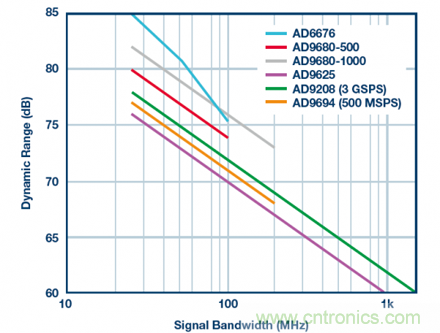 圖5.不同ADC的SNR與信號帶寬的關(guān)系
