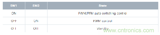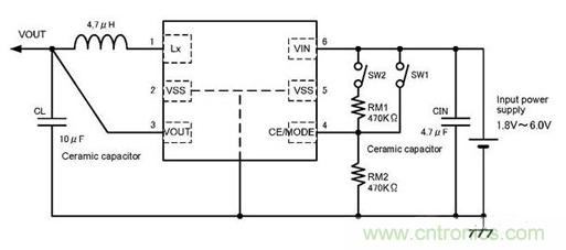 XC9237型在PWM/PFM自動轉換基礎上,又增加了用外部信號強制過渡到固定在PWM工作的功能。對應于使用機器的工作狀態,能使其工作在紋波更低的PWM工作狀態,能隨時控制降低噪聲(參照圖6)