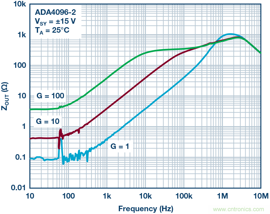 圖8b. ADA4096-2數據手冊中的閉環阻抗圖