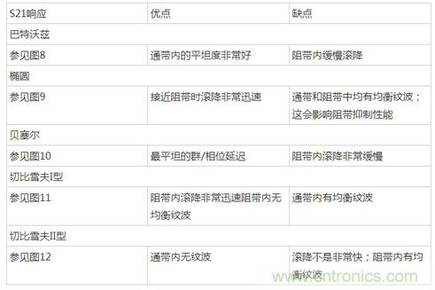切比雪夫I型濾波器具有良好的帶內平坦度,阻帶內滾降迅速且無均衡紋波響應,因而選擇它作為拓撲結構。