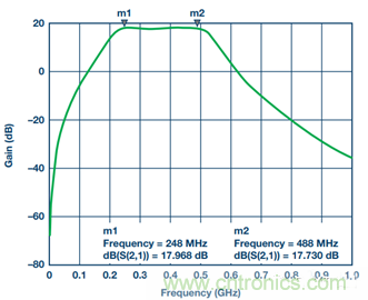 圖21. 采用Murata LQW18A電感的濾波器傳輸響應