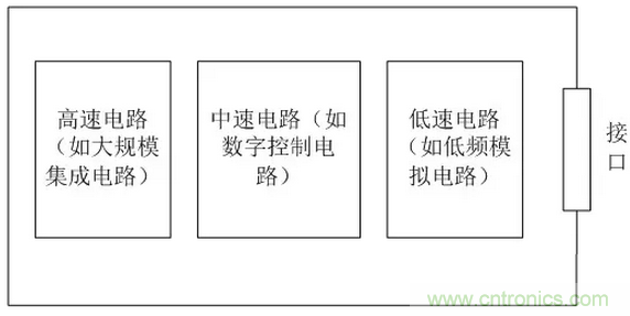 2、按邏輯速度分割:當需要在電路板上布置快速、中速和低速邏輯電路時,高速的器件(快邏輯、時鐘振蕩器等) 應(yīng)安放在靠近連接器范圍內(nèi),減少天線效應(yīng)、低速邏輯和存儲器,應(yīng)安放在遠離連接器范圍內(nèi)。這樣對共阻抗耦合、輻射和交擾的減小都是有利的。