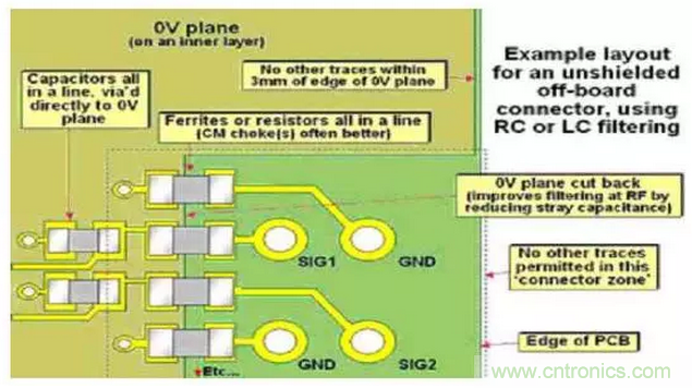 5、接口信號的濾波、防護、隔離器件等盡可能靠近接口連接器處,相應(yīng)的信號連接線必須盡可能短(符合工藝要求條件下的最短距離)。