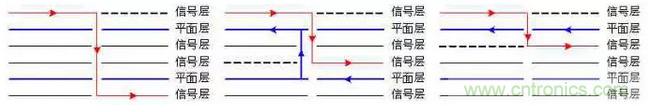9、關(guān)鍵信號線(如時鐘線、總線、接口信號線、很射頻線、復(fù)位線、片選線)一般都是強輻射源或敏感信號線,盡可能靠近地平面布線,使其信號回路面積減少,減少其輻射強度或提高抗干擾能力。