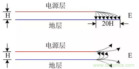 16、電源平面應(yīng)相對于其相鄰地平面內(nèi)縮20H,當因結(jié)構(gòu)限制時,也應(yīng)保證5H