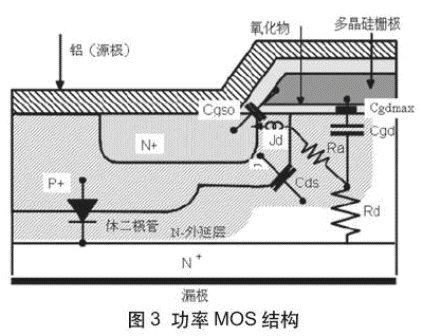MOSFET的物理結構導致其端口之間形成電容。金屬氧化物柵極結構決定了柵極到漏極(Cgd)以及柵極到源極(Cgs)的固有電容。漏極和源極之間的PN結(Cds)是因P+體的存在而產生,其中MOS單元建立在N+襯底頂部上的外延層附近。