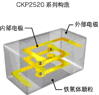 • CKP2520系列是在薄膜上印刷內部電極,通過通孔實現層間的連接,使內部電極在螺旋上形成的