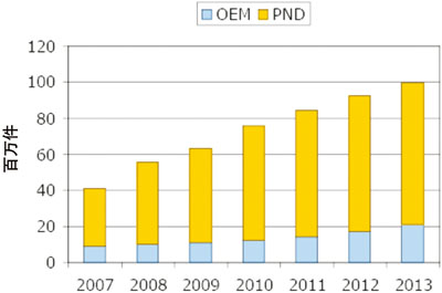 • 2008年PND的出貨量同比將增長43%,從2007年的3200萬件增長到4600萬件
