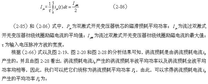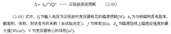 這里順便指出,利用(2-88)和(2-89)式來分別測試變壓器鐵心的磁滯損耗和渦流損耗是非常困難的;一個是它們的系數很難決定,另一個是兩者很難分別進行測量,或從測量結果中進行分離。對比兩式的參數就可以知道,它們之間最大的區別是頻率對損耗的影響程度;一個是與頻率成正比,另一個是與頻率的平方成正比。