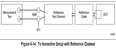 在USB3.0的TX的眼圖和抖動測試中,測量的是待測試信號經(jīng)過參考測試信道后TP1點的眼圖和抖動。如下圖4中的Reference test channel即為參考測試信道,在規(guī)范中定義了long channel、short channel和3米電纜三種參考測試信道。如果使用long channel或者較長電纜,信號到達接收端時衰減比較大,眼圖已經(jīng)閉合,USB3.0芯片接收端使用了CTLE均衡器對信號進行均衡后(CTLE均衡器介紹見本文最后一部分),信號眼圖的質量將大大改善,所以要求測試儀器分析出CTLE均衡器處理后信號的眼圖和抖動。
