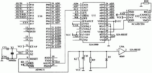ECU(AT89C51)+CAN控制器(SJA1000)+CAN收發器(PCA82C250)的電路結構以下是其核心芯片簡介: