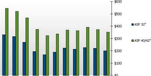 液晶電視面板的價格從2010年第二季開始再次的下跌,特別是在32寸和40/42寸的產品上,這是最受歡迎的兩種尺寸;相較于2009年第三季,這兩種尺寸的面板價格分別在2010年第三季下跌了10%和5%。“2010年第二季和2010年第三季下跌的面板價格,將會直接地影響到2010年第四季假期中的零售價格。如果消費者對價格下跌仍舊相當敏感的話,這將會幫助美國當地市場的需求上升。” Gagnon總結。